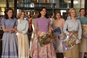 فیلم در نهایت قضاوت مطلق نمیکند. بدین معنا که صفر و یکی به مسئله نگاه نمیکند. نه زندگی زن خانهدار را کاملاً نفی میکند و نه زن شاغل و مستقل را ایدهآل مطلق میداند؛ بلکه آنچه برجسته میشود، امکان انتخاب آگاهانه و حق زنان در تعیین مسیر زندگی خود است. از منظر جامعهشناختی، لبخند مونالیزا بازتابدهنده شرایط اجتماعی خاصی در آمریکا پس از جنگ جهانی دوم است؛ دورانی که زنان، پس از تجربه حضور در بازار کار در زمان جنگ، دوباره به خانهها بازگردانده شدند اما آن تجربه دیگر خاموششدنی نبود. این کشمکشهای درونی و اجتماعی، مقدمهای بود بر جنبشهای گسترده فمینیستی دهههای ۶۰ و ۷۰ میلادی.
